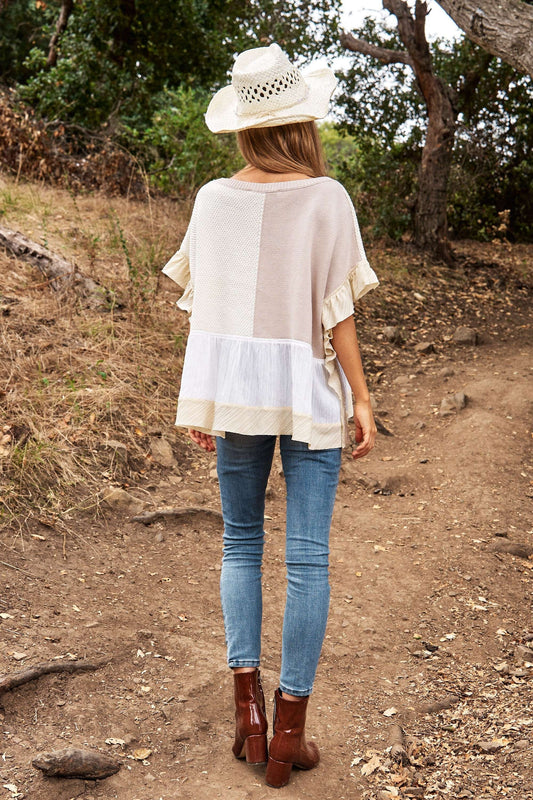 Davi & Dani Mix Match Textured Ruffle Detail Sweater Top