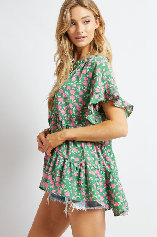 Sold outDavi & Dani Print V-Neck Ruffle Top