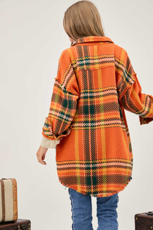 Davi & Dani Multi Plaid Button Front Jacket