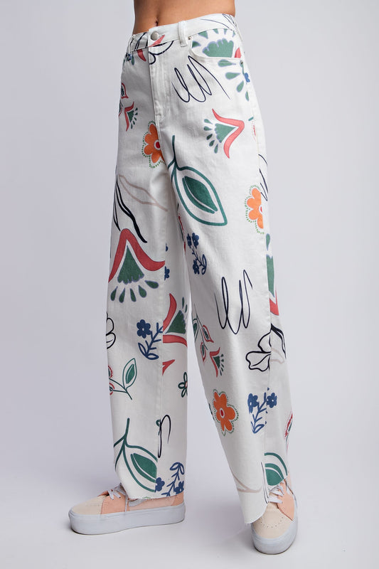 Easel Printed Washed Twill Wide Pants