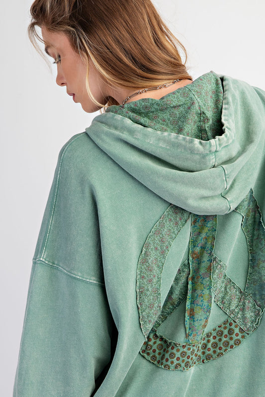Easel Peace Patch Washed Terry Hoodie