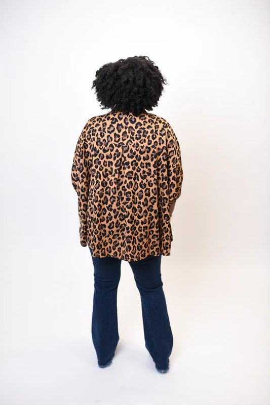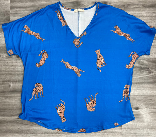 Entro Cheetah Print V-Neck Short Sleeve Top