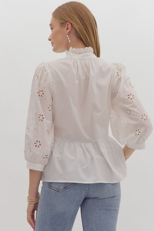 Entro Eyelet Lace 3/4 Sleeve Ruffled Top