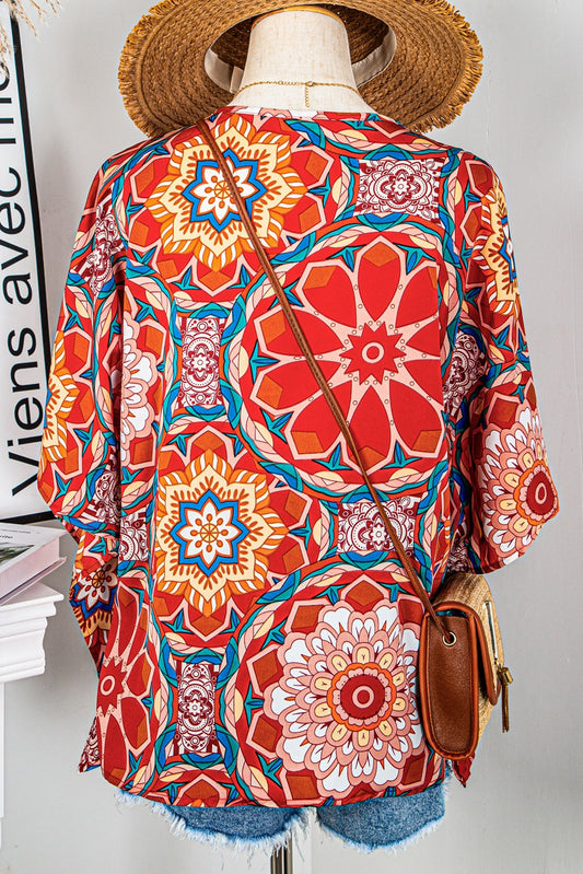 FashionWorks Boho Floral Print Batwing Sleeve V-Neck Blouse