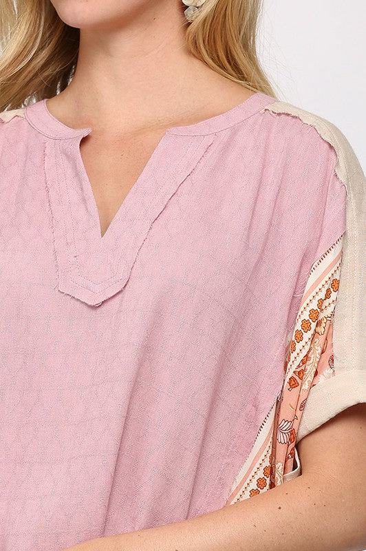 GiGio Novelty Knit and Solid Knit Mixed Loose Top