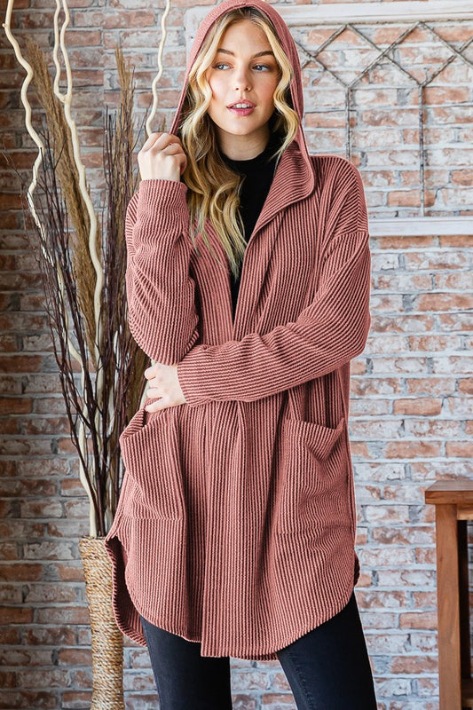 Heimish Ribbed Hoodie Open Cardigan