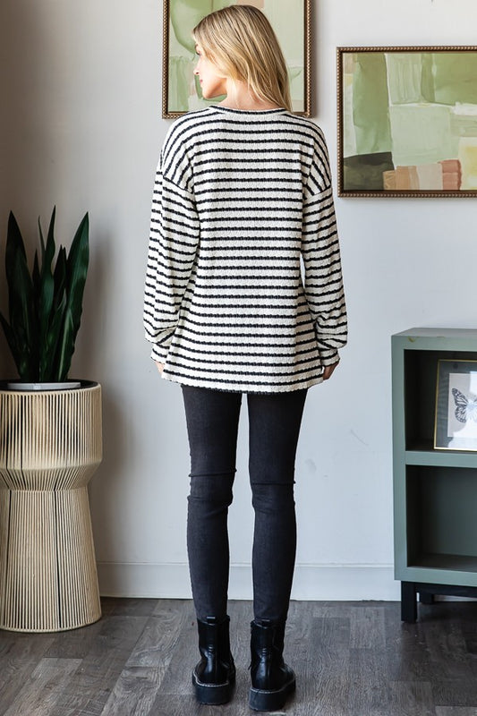 Heimish Long Sleeve Stripe & Solid Contrast Hoodie