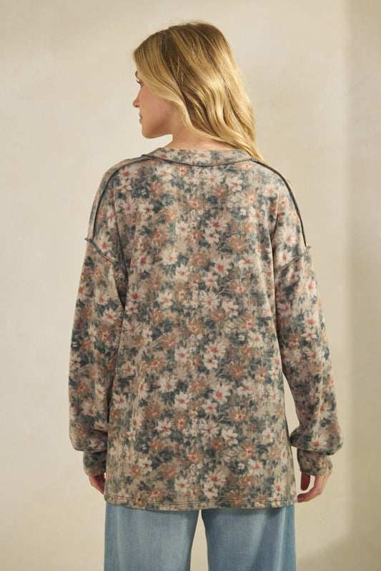 Heimish Long Puff Sleeve Multi Print Top