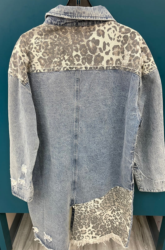Oli & Hali Washed Long Color Block Leopard Jacket