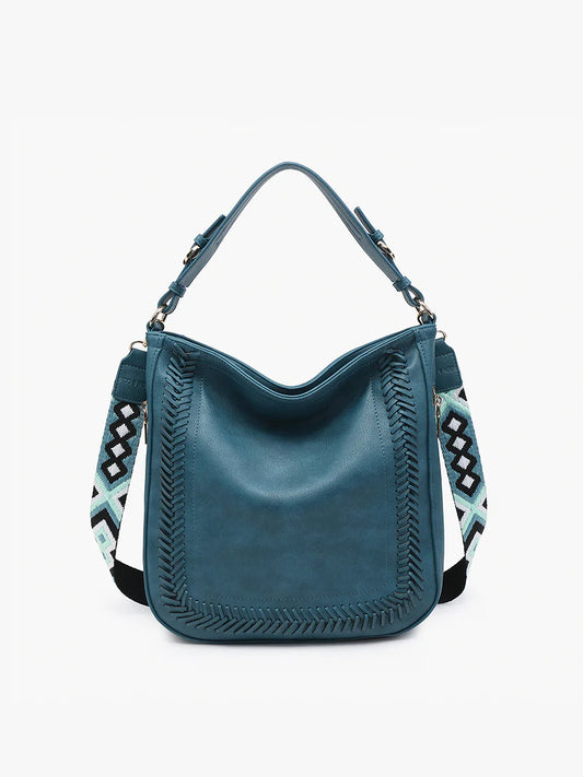 Jen & Co. Aris Small Whipstitch Hobo W/Guitar Strap