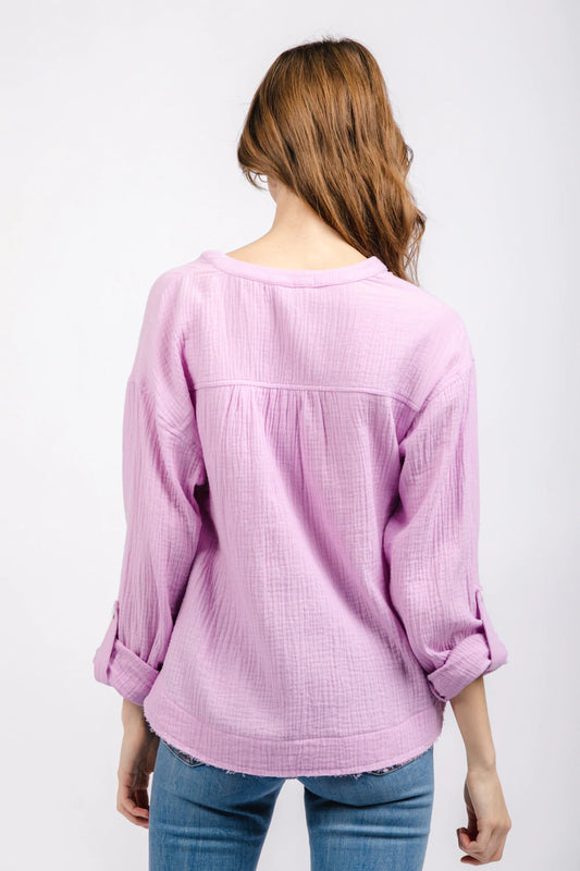 New In Soft Natural Crinkle Gauze Lavender Blouse