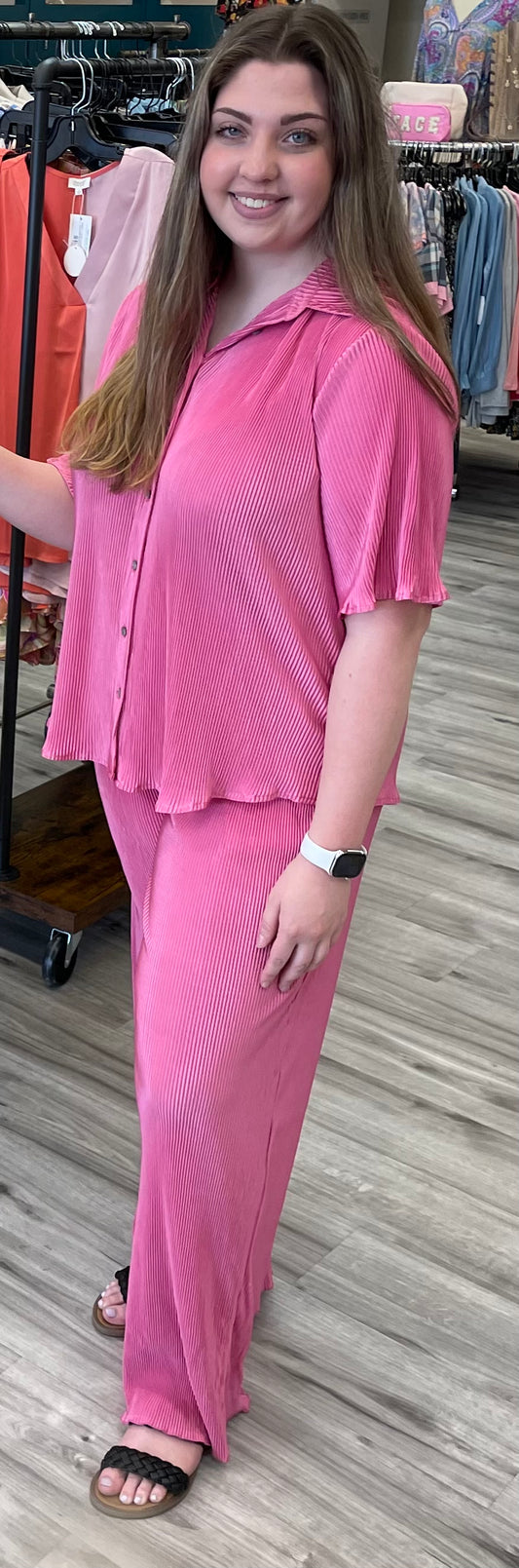 ODDI Satin V-Neck Front Pleats & Smocked Hem