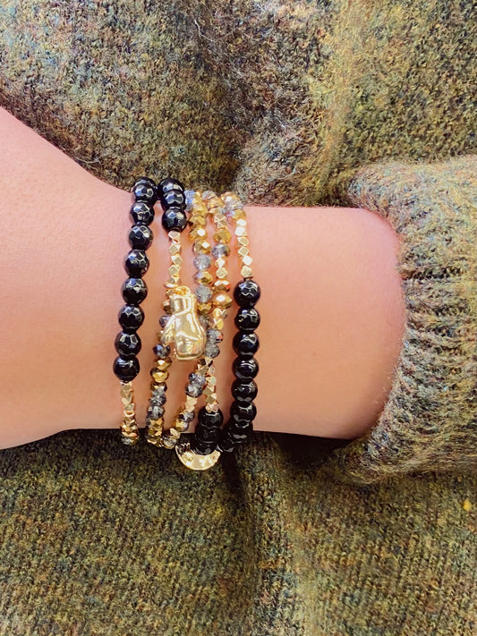 What's Hot Pink Pearl Bamboo Tub & Gold Stretch Bracelet