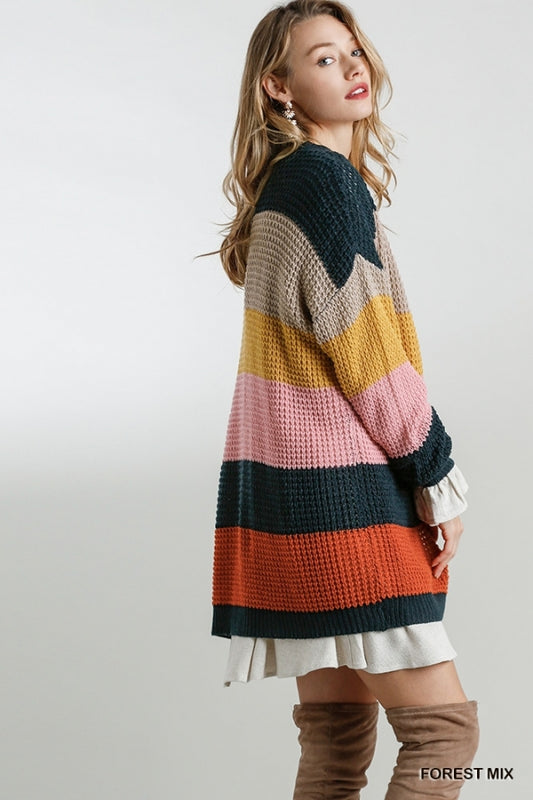 Umgee Multicolored Knit Open Striped Cardigan