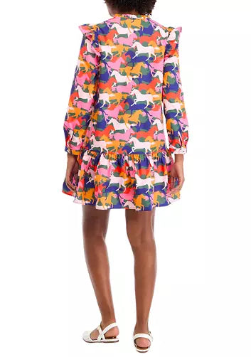 Kori America Tropical Printed Ruffle Wrap Mini Dress