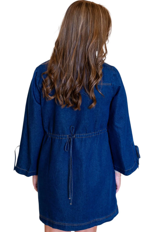 Entro Denim Dress W/Slit Sleeves & Cinch Waist With Tie Back