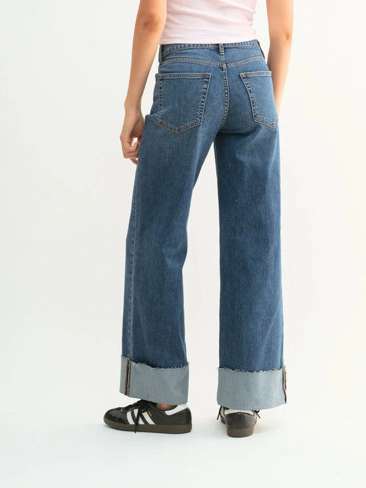 Just Black Scissor Cut Cuffed Slim Wide White Denim