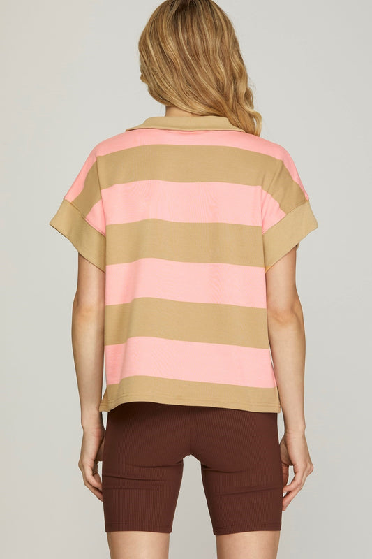 She + Sky Short Sleeve Mock Neck Striped Sweatshirt