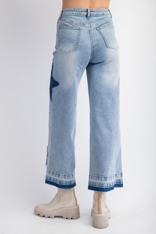 Easel Washed Star Patch Pants