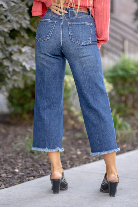 Judy Blue HW Button Fly Destroy Hem Crop Wide
