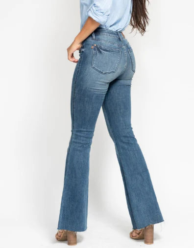 Judy Blue Tummy Control Vintage Wash Cut Hem Flare