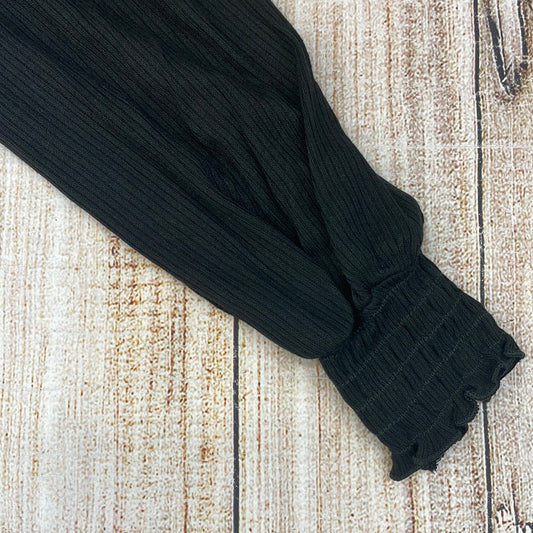 Lime 'N' Chili Rib Round Neck Balloon Sleeve Top
