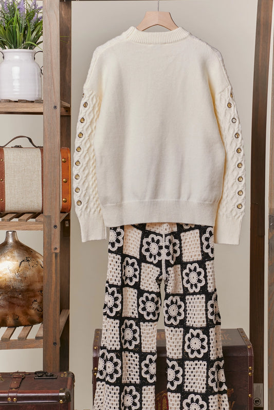 Mello Cable Knit Sweater w/grommet detailed sleeves