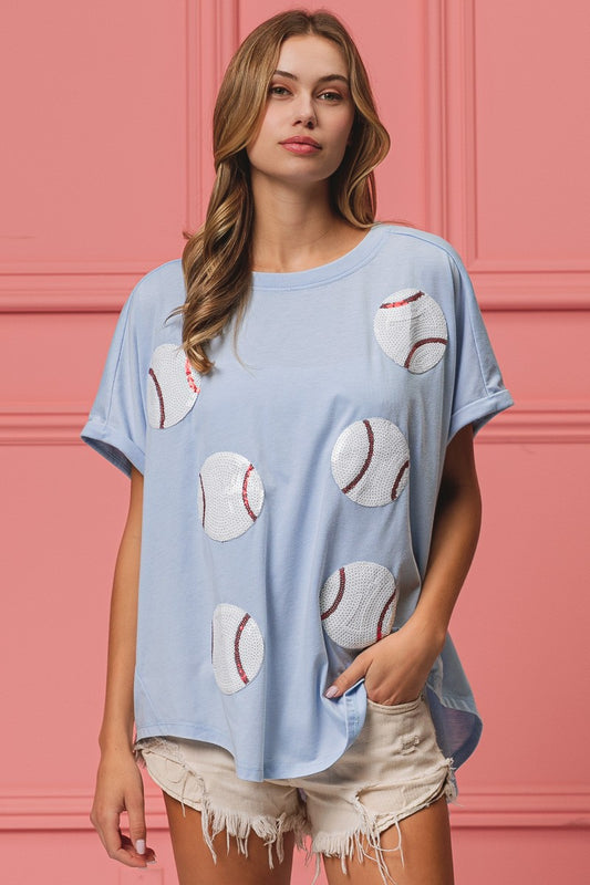Yolly Long Sleeve Hi-Low Blue Sneakers Tee