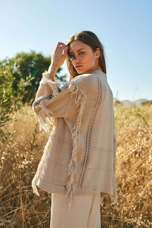 Mello 3/4 Sleeve Open Front Fringe Cardigan