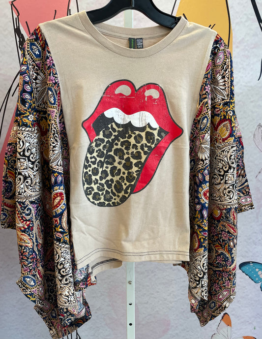 POL Hooded Balloon Sleeve Thermal Star Patch Top