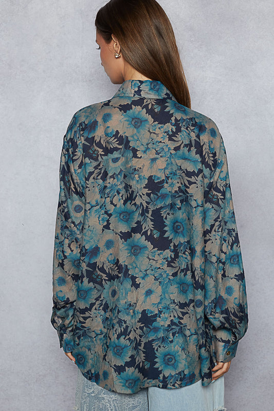 Yolly Drop Sleeve V-Neck High Low Floral Blouse