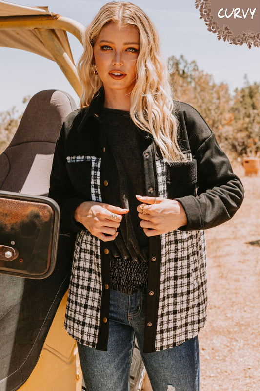 Umgee Button Down Denim Jacket With Plaid Detailing