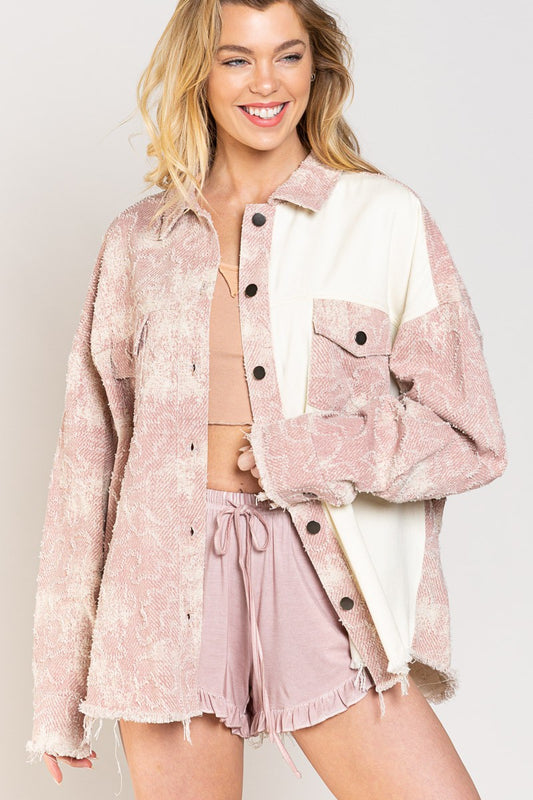 ODDI Distressed Snap Button-Down Jacket Leopard