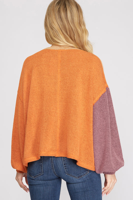 White Birch Oversized Ribbed Knit Top W/Pocket
