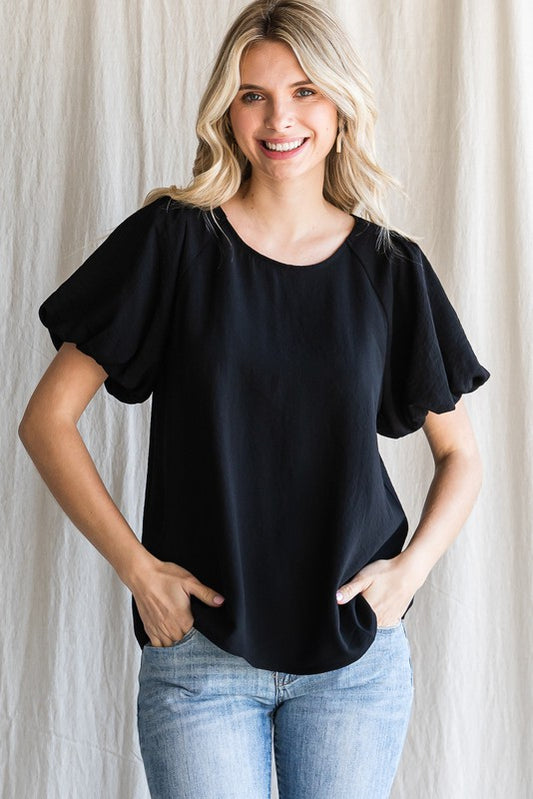 Jodifl Solid U-Neck Short puffed Sleeved Top