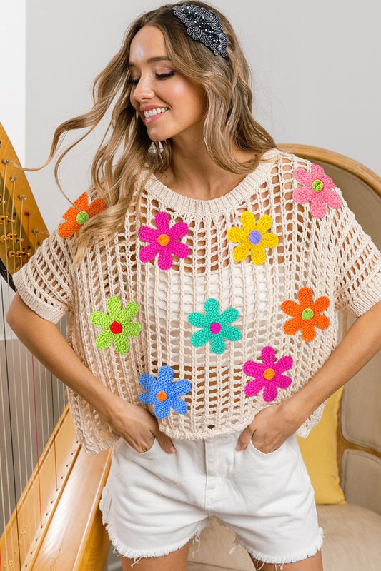 Bibi Heart Embroideries Raglan Sleeve Sweater