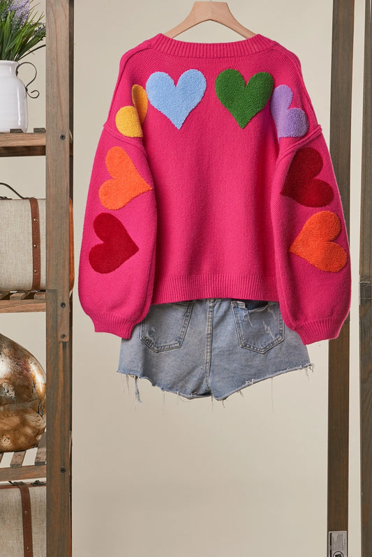 Mello Love Lettering Heart Patchwork V Neck Cardigan