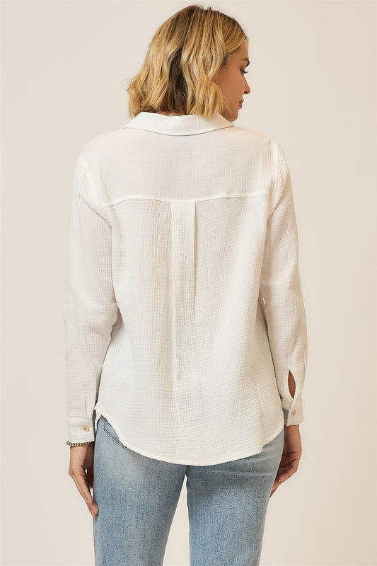 Heimish Solid Long Sleeve Top With Heart Rhinestone