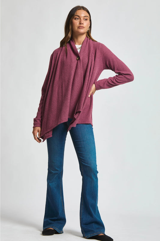 Cozy Co. Open Knit Ruched Center V Neck Top