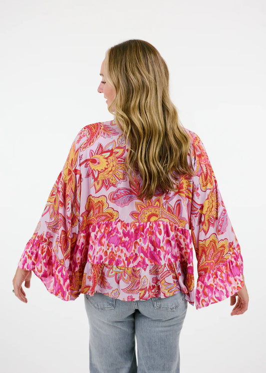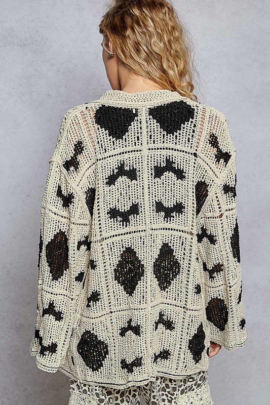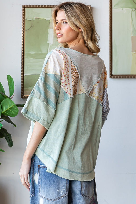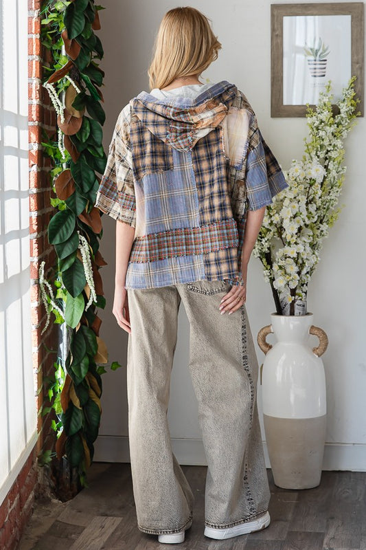 POL Hooded Balloon Sleeve Thermal Star Patch Top