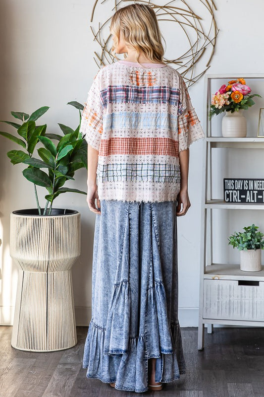 POL V-Neck Sleeveless Floral Lace Patch Top