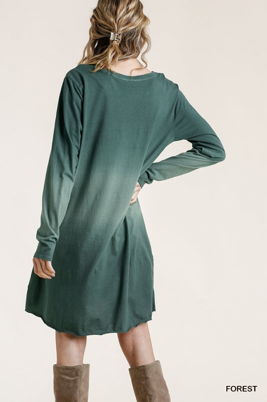 Umgee Long Sleeve Frayed Edge Top With Side Slits