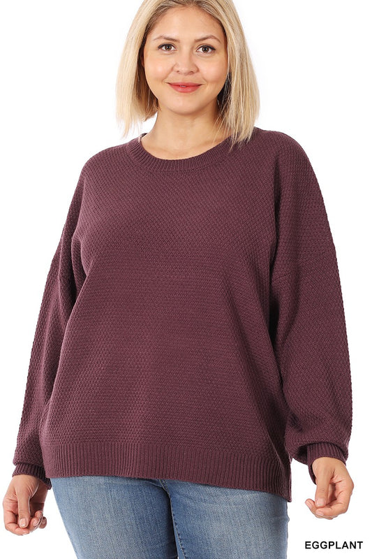 Zenana Ribbed Batwing Sweater (Plus Size)