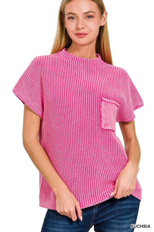 Zenana Mock Neck Short Sleeve Sweater