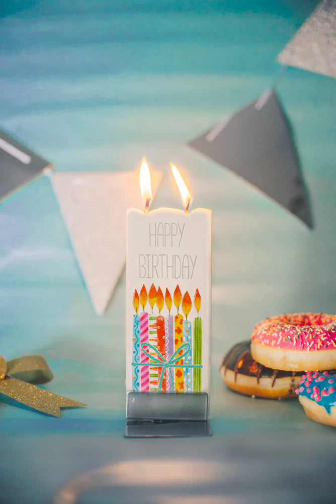 Hand-painted in Lithuania, these candles stand out in their simplicity. The flatter design is a unique approach to candles that has a minimal (and eye-catching) feel. The twin wicks burn evenly and self-extinguish as they near the steel base, without any dripping wax or smoke.