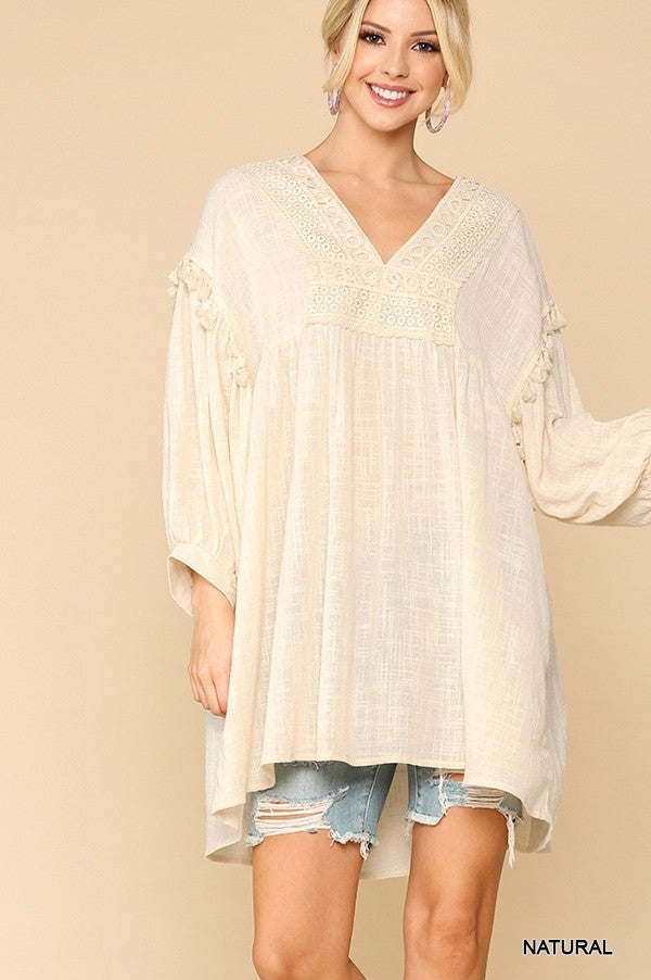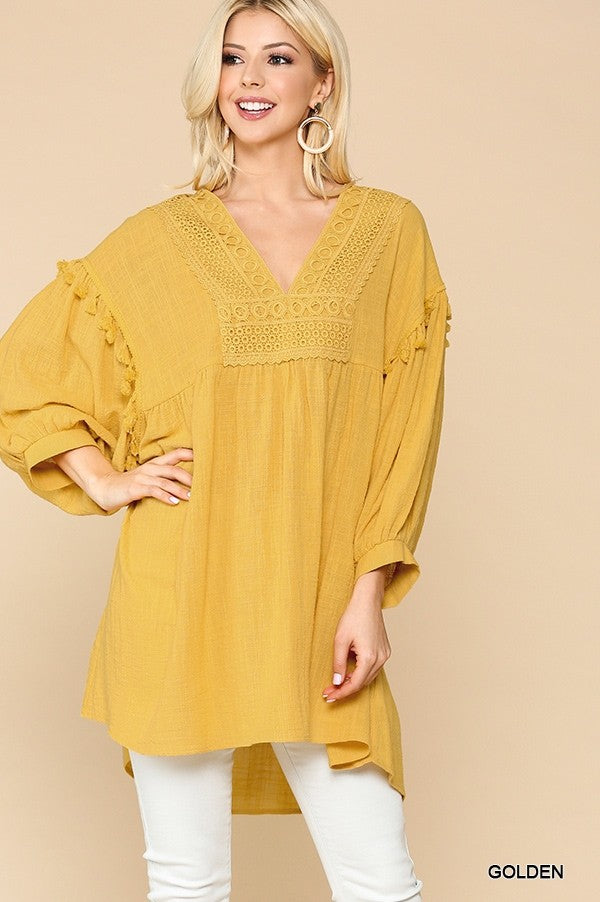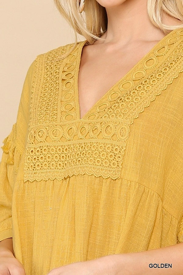 GiGiO Crochet V-Neck Swing Top Hi-Lo Hem Top/ Dress