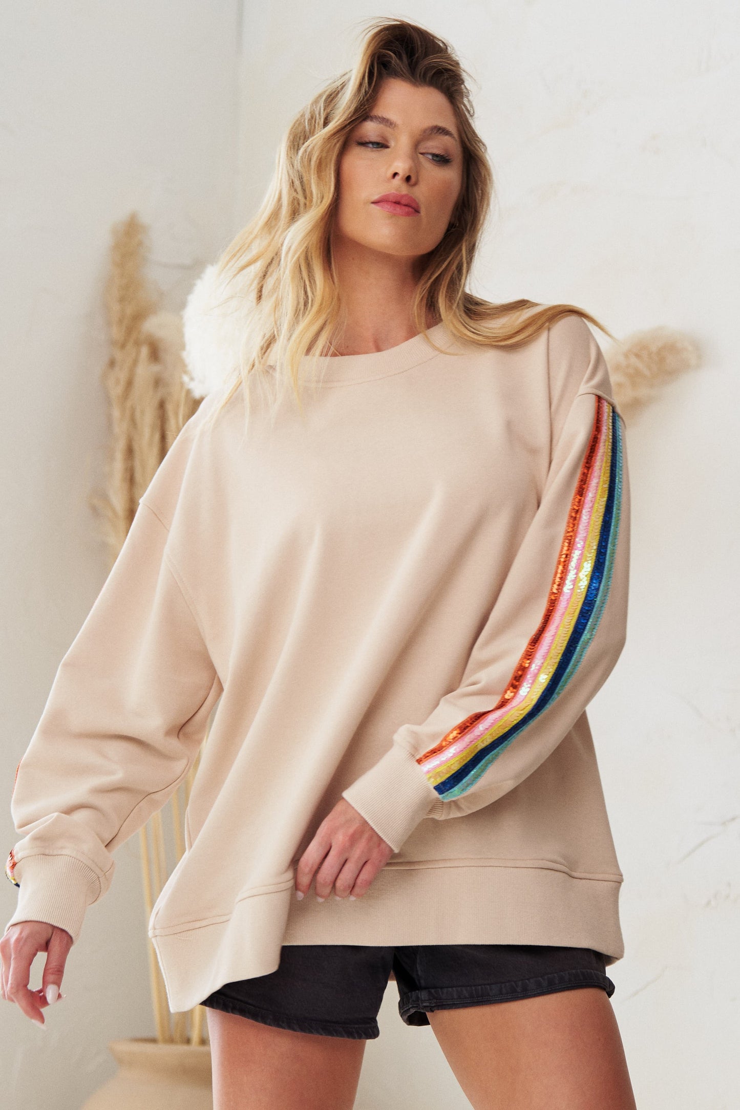 Jade By Jane Loose Fit Rainbow Sequined Arm Sweatshirt