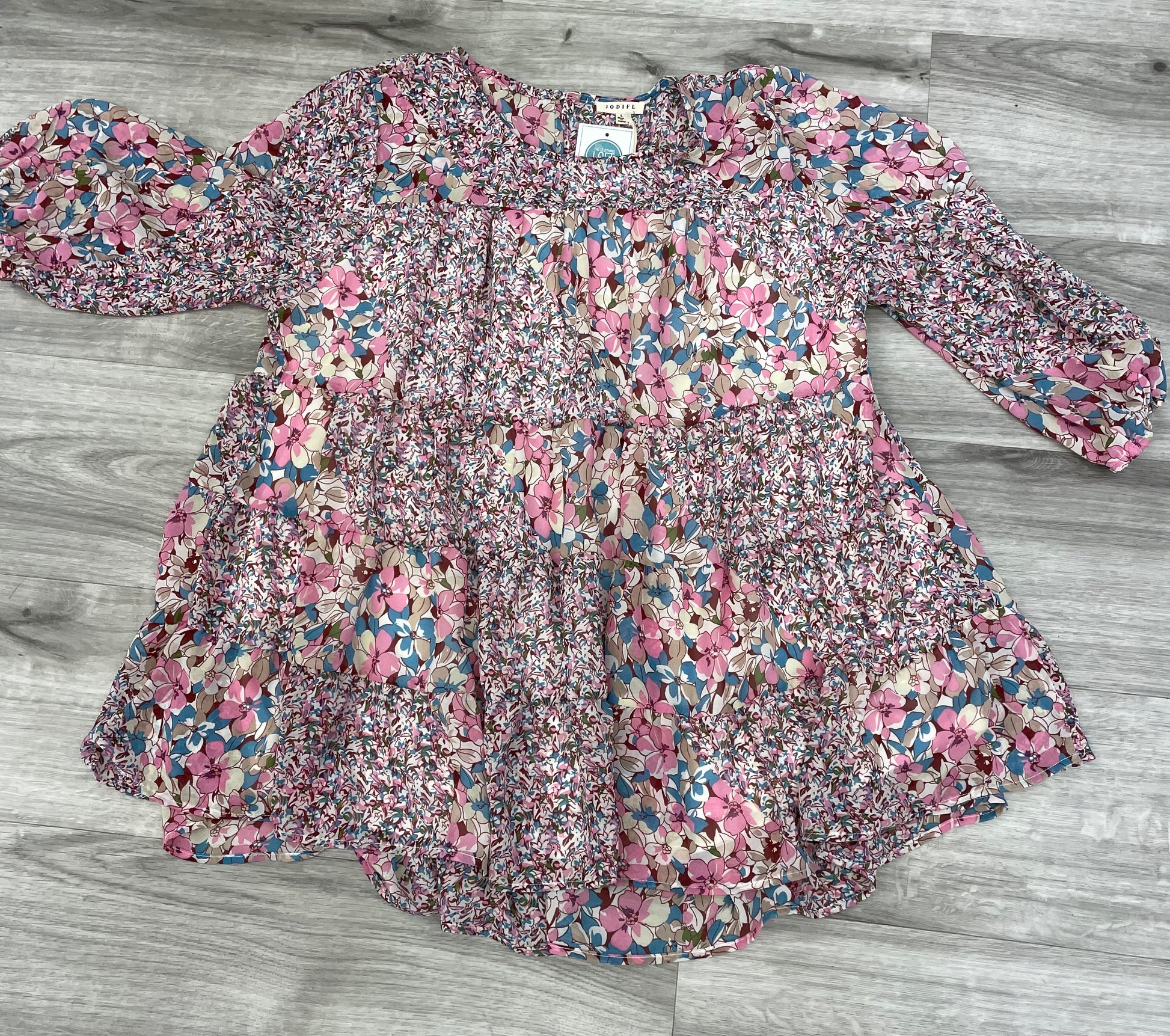 Jodifl Pink Floral Print Bubble Sleeve Top