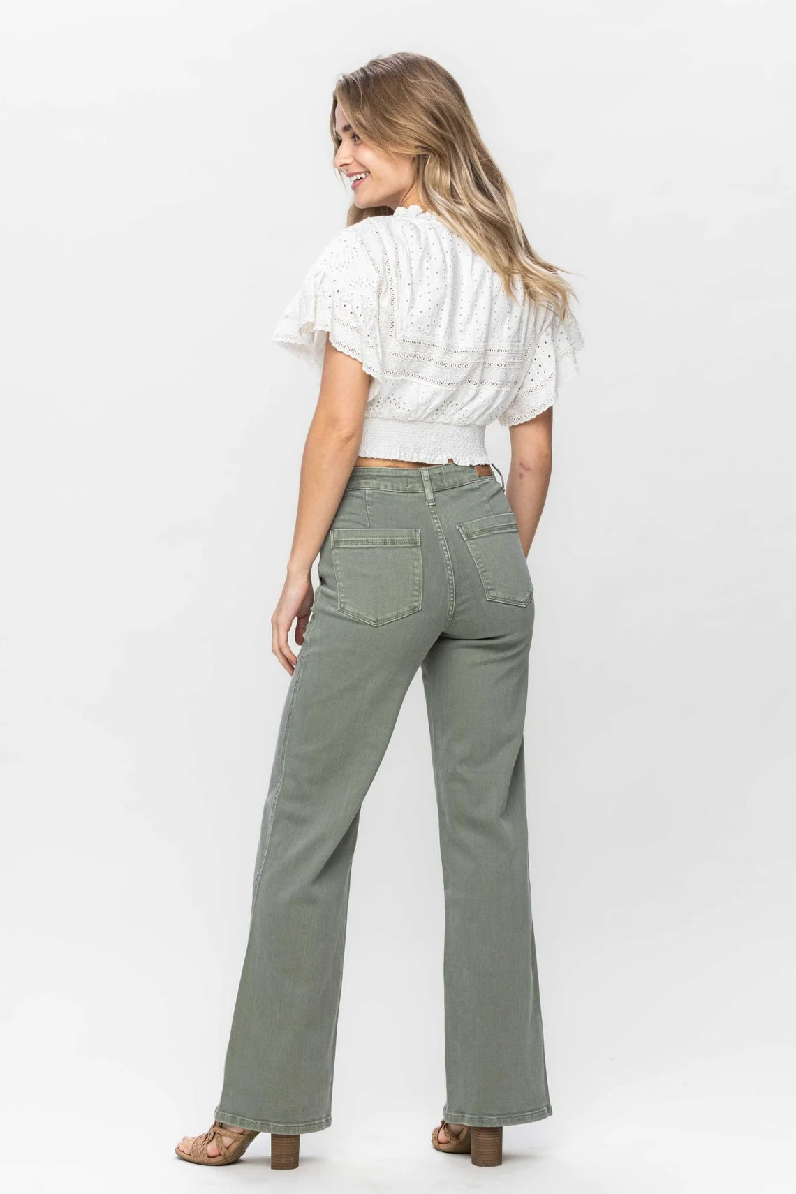 High Waist Sage Garment Dyed Front Seam Straight Fit