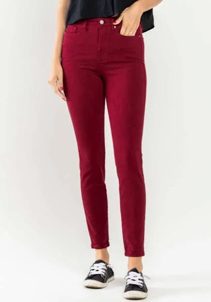 Judy Blue HW Tummy Control Garment Dyed Scarlet Skinny Jeans
